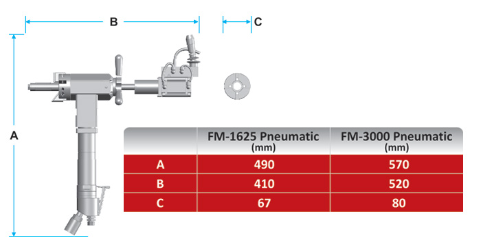 The FM-3000 auto lock machine is a powerful, reliable and versatile bevelling machine. It’s automatic locking feature allows it to perform repeatable high quality weld preparations on all types of materials. It produces fast accurate weld preps on any schedule and material of pipe effortlessly within its range.